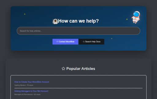 We have also launched our beta help hub that we will be filling full of resources and easy-to-find documents to help you manage your MoonBots with ease but if you can't find what you are looking for, feel free to message us anytime!